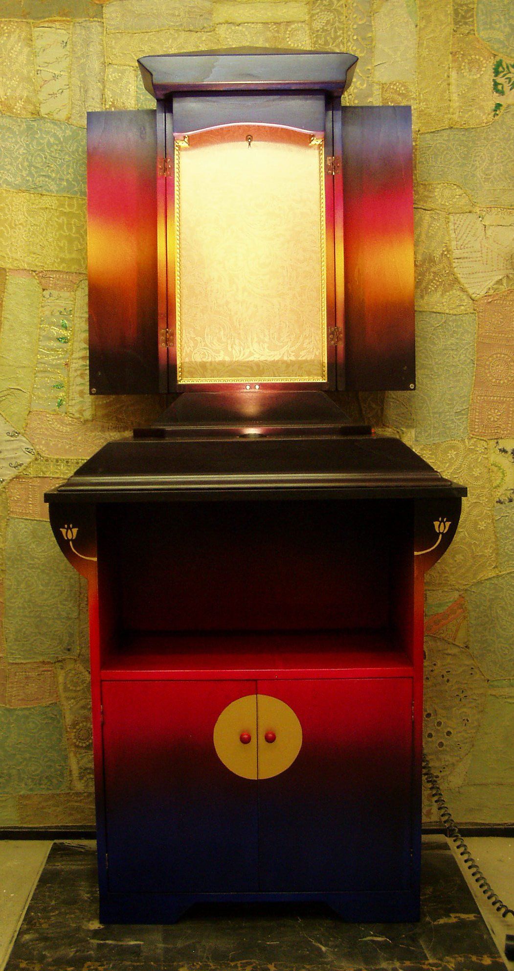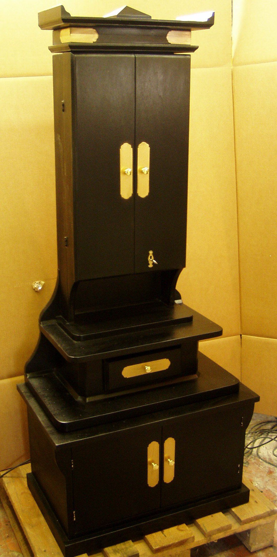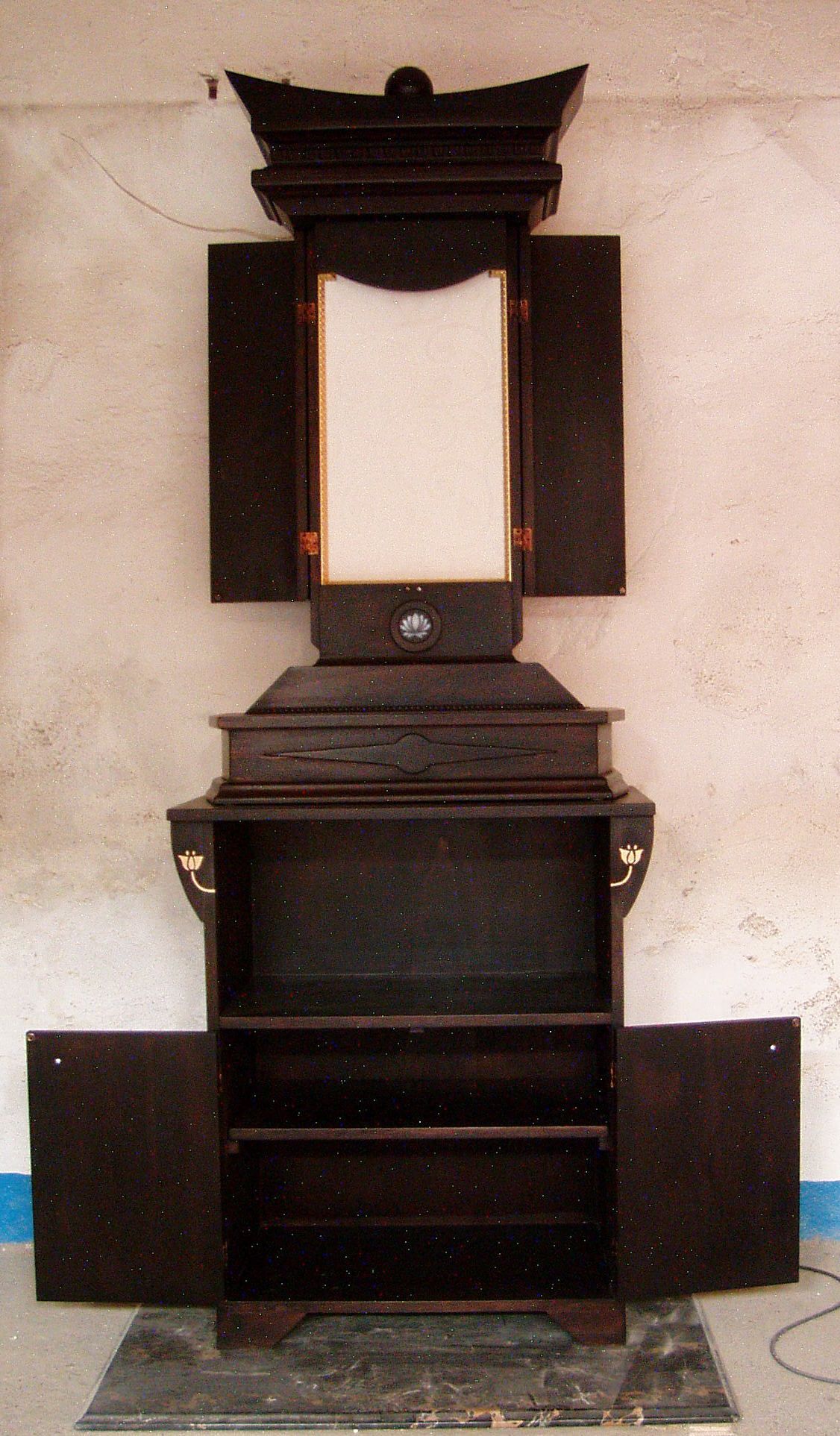 VIRAND BUTSUDANDimensioni: h 186 x 70 x 42 cm.Illuminazione interna LED. Visione 180°. Colore a sceltaQuesto butsudan è stato ideato e progettato da Andrea e Virna, che dopo anni di pratica hanno pensato di farsi un regalo e visto il risultato, abbiamo deciso di metterlo in catalogo. PREZZO 900,00 EU.Cliccare sull'immagine per ingrandire