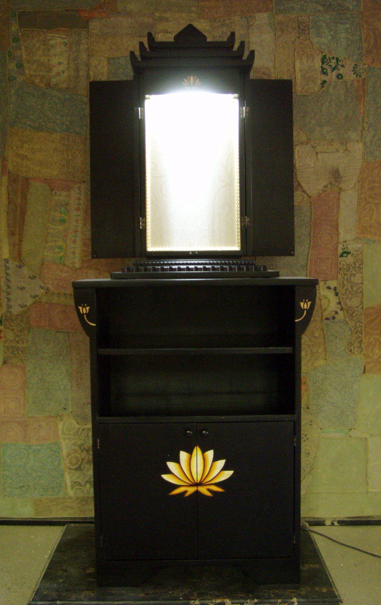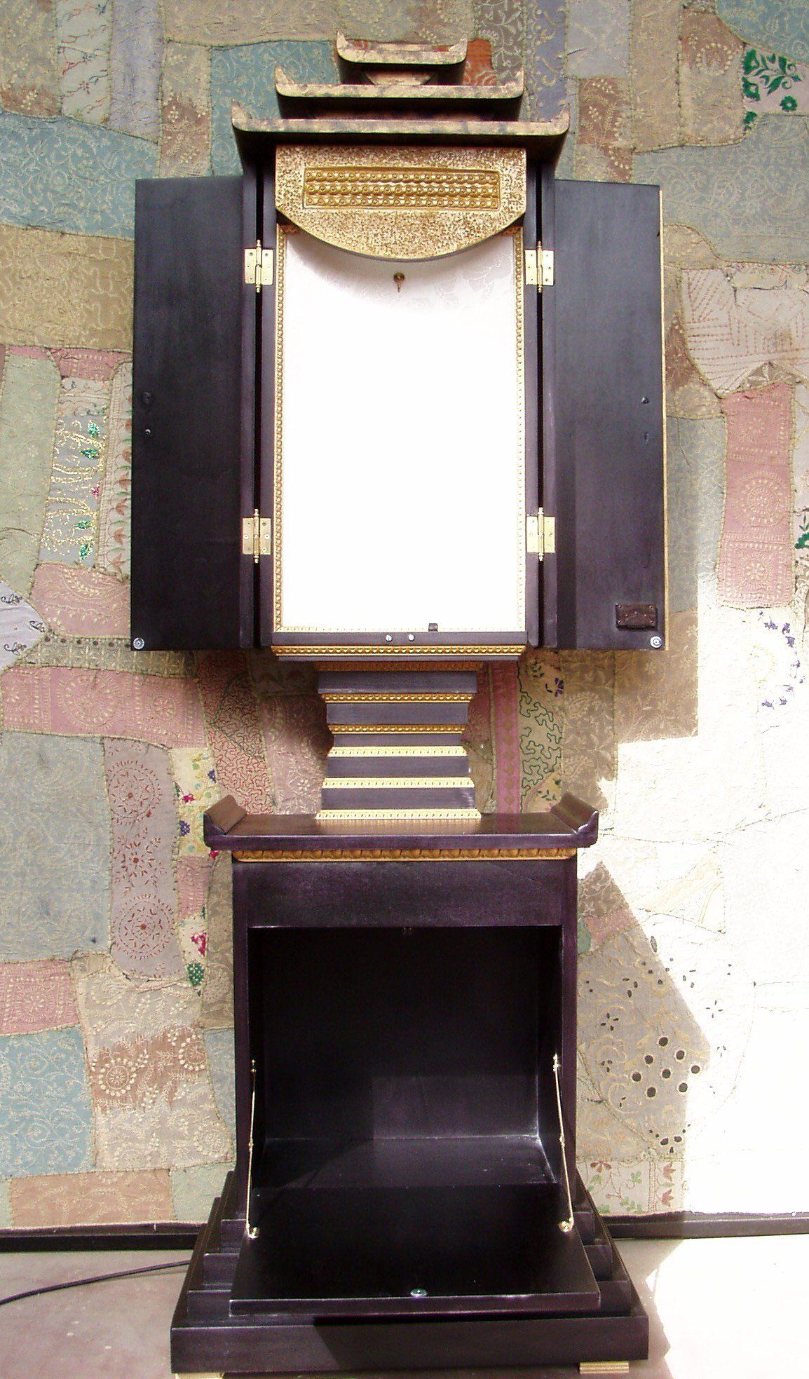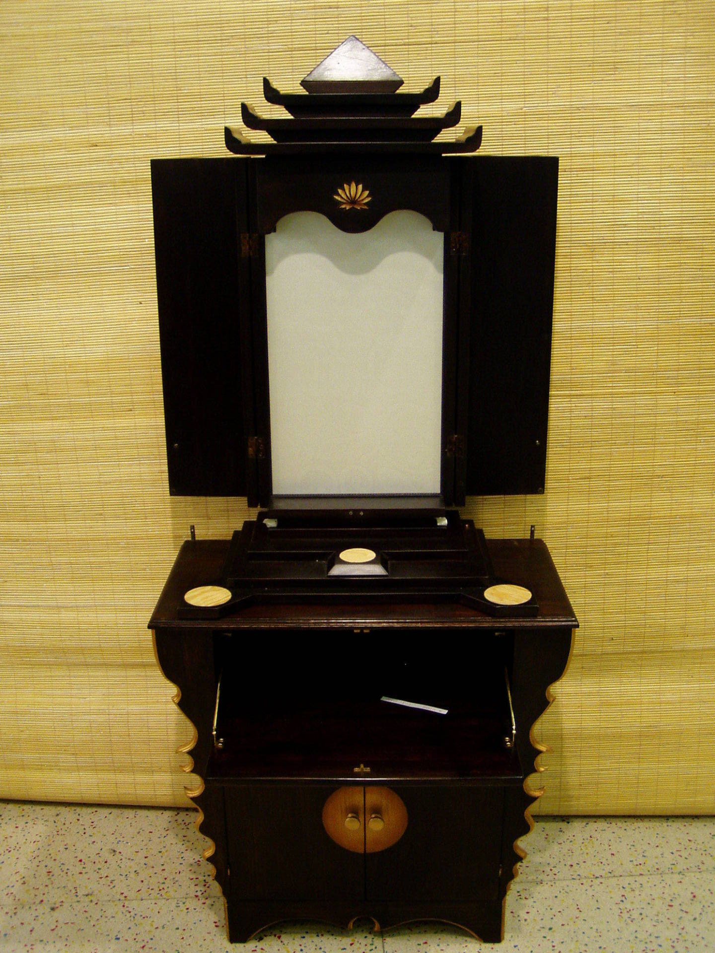 VIRAND BUTSUDANDimensioni: h 186 x 70 x 42 cm.Illuminazione interna LED. Visione 180°. Colore a sceltaQuesto butsudan è stato ideato e progettato da Andrea e Virna, che dopo anni di pratica hanno pensato di farsi un regalo e visto il risultato, abbiamo deciso di metterlo in catalogo. PREZZO 900,00 EU.Cliccare sull'immagine per ingrandire